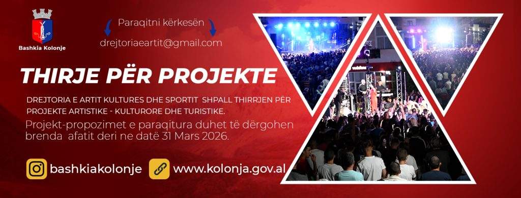 Drejtoria e Artit, Kulturës, Turizmit dhe Sportit në Bashkinë e Kolonjës me qëllimin të mbështesë industrinë krijuese në vend, duke synuar forcimin e artistëve dhe operatorëve kulturorë, përmirsimin e cilësisë artistike dhe promovimin e prodhimit të tyre ju ben thirje individëve dhe shoqatave artistiko-kulturore dhe agjensive të tjera të specializuara të paraqesin project-propozimet e tyre për aktivitete te ndryshme Artistike-Kulturore.