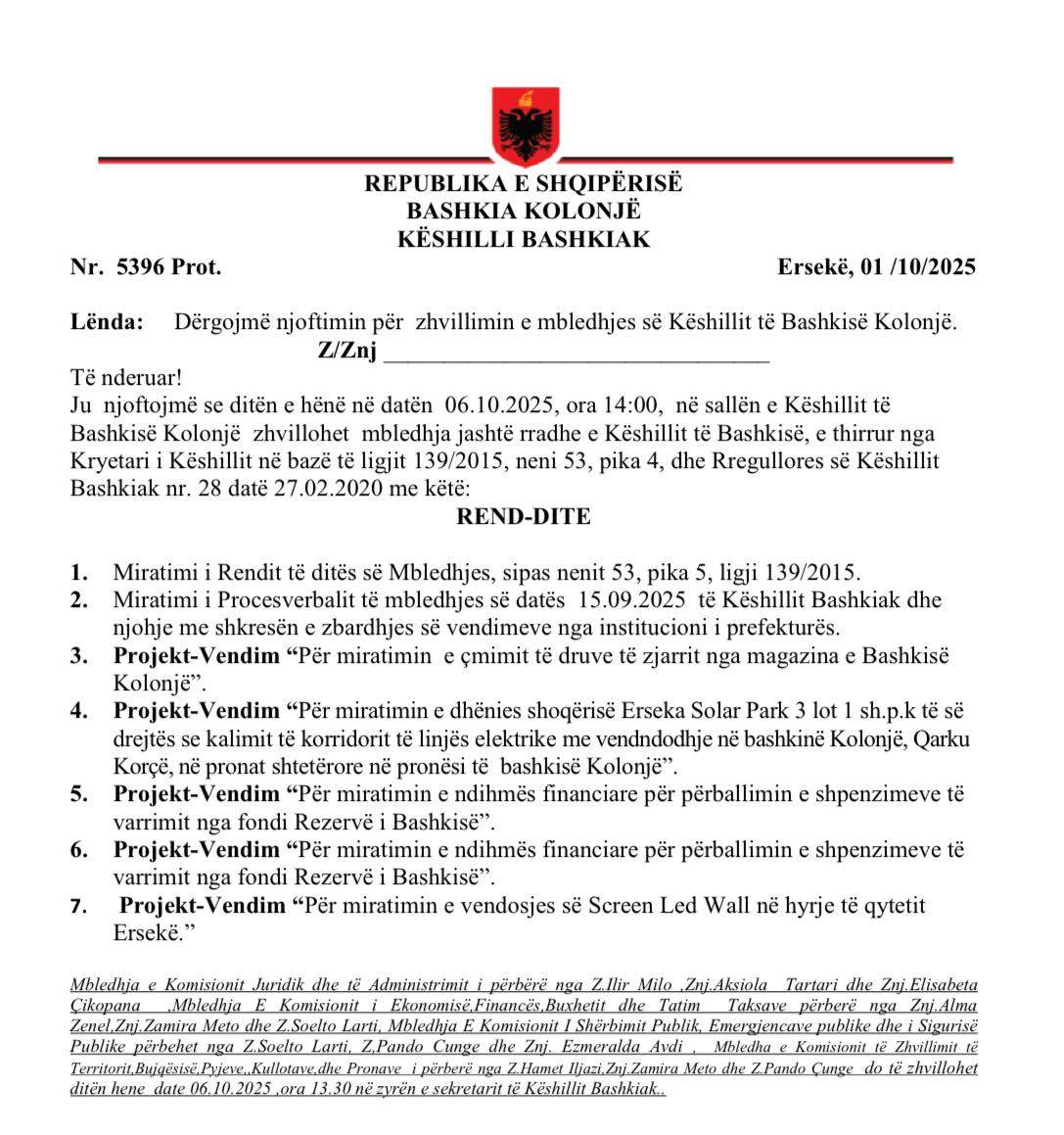 Rend dite 06.10.2025, dita e hënë, Ora 14:00